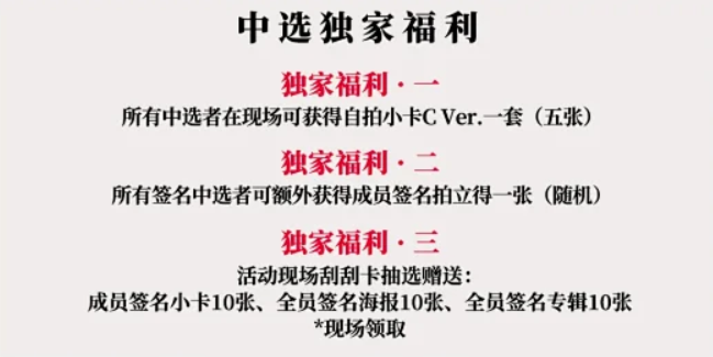 当選者特典→フォトカード5枚セット、サインポラロイド1枚(メンバーランダム) ※現場配布
