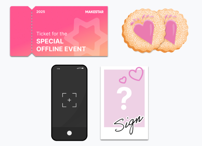 当選者特典→応募メンバーとデコったクッキー、応募メンバーと2ショットセルカ撮影、落書きサインポラロイド1枚(応募メンバー)