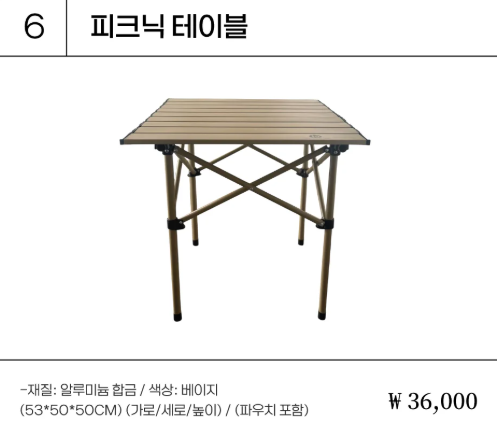 6.ピクニックテーブル 3600円/応募券11枚