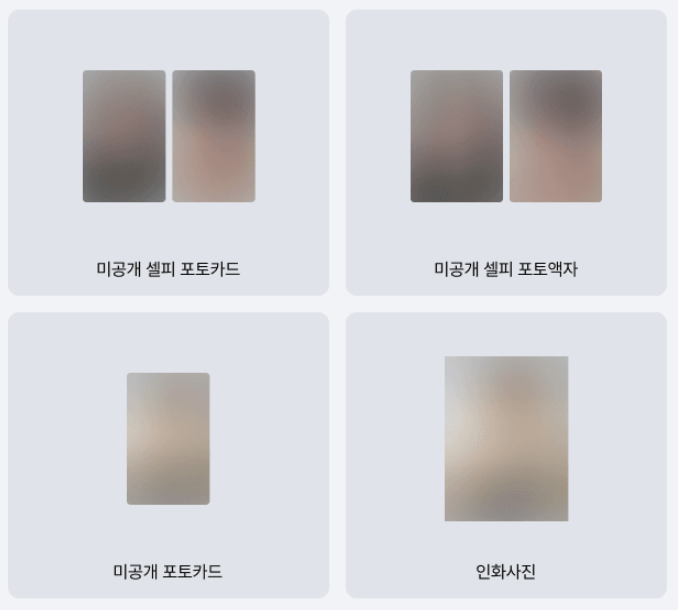 アルバム1枚につき、未公開セルフィーフォトカード1枚(全2種、ランダム)+未公開セルフィーフォトフレーム1枚(全2種、ランダム)